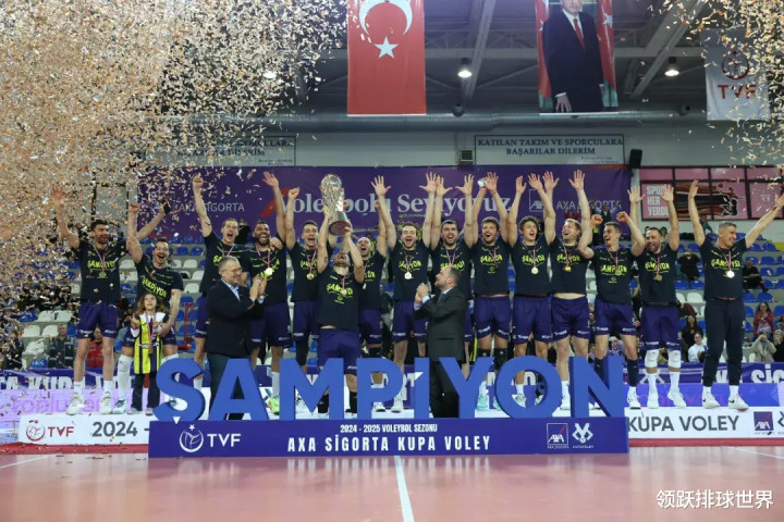 北京时间3月25日深夜,在2024-2025赛季土耳其杯决赛中,费内巴切男排(Fenerbahce Medicana)展现出色统治力,以3-0(25-19、25-23、25-17)横扫浩克银行(Halkbank),成功第五次夺得该赛事冠军,本场比赛结束后,球队在场上与球迷一同庆祝这一辉煌胜利。